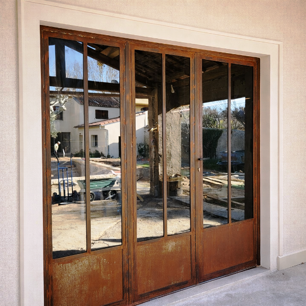 Porte fer en té traditionnelle avec verre feuilleté.