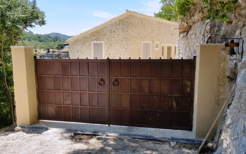 Ce portail en fer forgé modèle "Château" est entièrement réalisé en tôle pleine et fer plat de 30x5mm posé en applique. Les anneaux décoratifs forgés à la main et les détails géométriques en relief ajoutent une touche d'élégance rustique, rappelant le charme des châteaux et des grandes propriétés.(possibilité en 2 ouvrants ou coulissant ) Contactez nous pour concevoir un portail adapté à votre entrée et bénéficiez d'une fabrication artisanale de qualité exceptionnelle.
