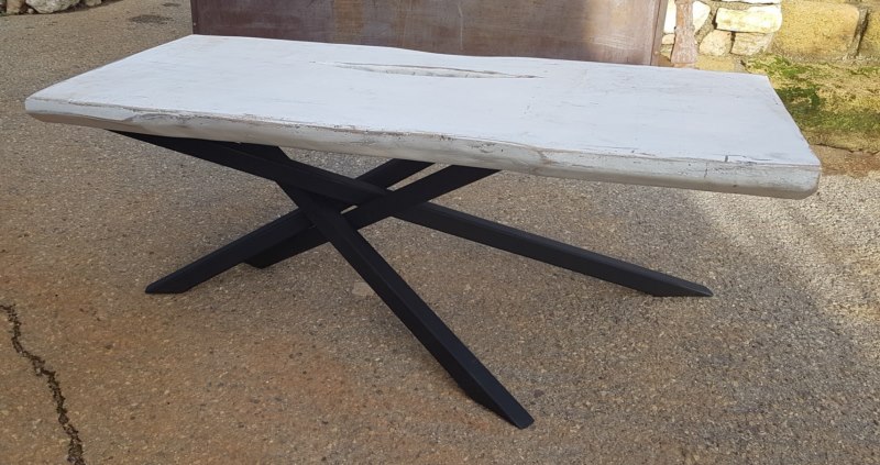 Découvrez notre table basse au design unique, avec un piétement croisé en tube de 40 x 40 mm et un plateau en bois massif. Ce modèle s'intégre parfaitement à votre intérieur ou votre extèrieur. Pour toute demande de personnalisation ou une fabrication sur-mesure, n'hésitez pas à nous contacter